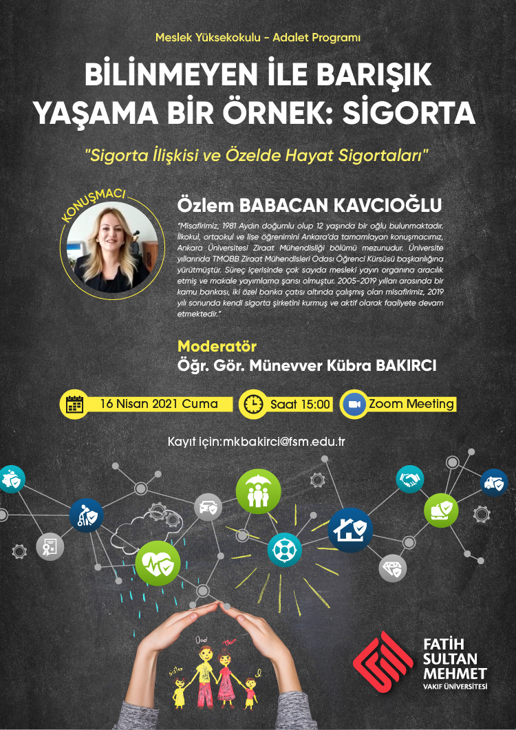 Adalet Programı tarafından düzenlenen "Bilinmeyen İle Barışık Yaşama Bir Örnek: Sigorta" adlı seminer 16 Nisan 2021 Cuma günü saat 15.00'te Zoom uygulaması üzerinden gerçekleştirilecektir.