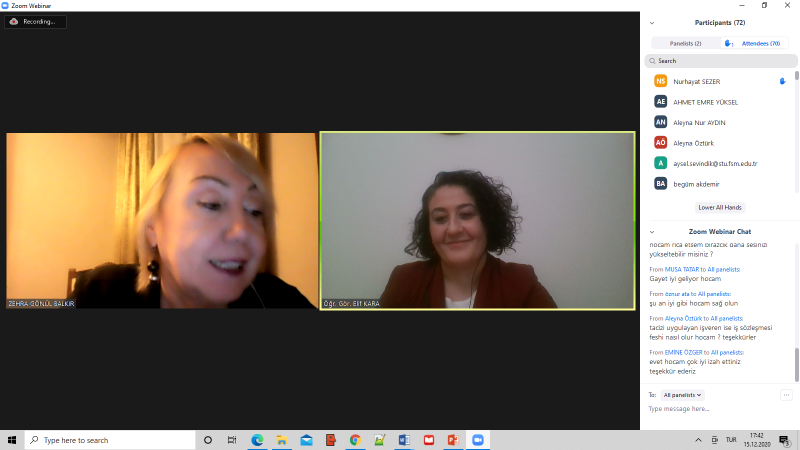 Kocaeli Üniversitesi Hukuk Fakültesi Özel Hukuk Bölüm Başkanı, İş ve Sosyal Güvenlik Hukuk Ana Bilim Dalı Öğretim Üyesi Sn. Zehra Gönül BALKIR’ ın konuşmacı olarak katıldığı konferans, Öğr. Gör. Elif KARA’ nın moderatörlüğünde gerçekleştirildi. İşverenin koruma ve gözetme borcunun anlamı, kapsamı, uygulamaya yansımaları açıklandıktan sonra özellikle Covid-19 döneminde nasıl şekillendiği üzerinde duruldu. Salgının, iş sözleşmeleri üzerindeki etkileri, bu dönemde öne çıkan uzaktan çalışma sistemi, işverenin yükümlülüklerinin nasıl şekillendiği hususları ayrıntılı olarak açıklandı. Bu dönemin, içtihatlara nasıl yansıyabileceğine dair öngörülerde bulunuldu.