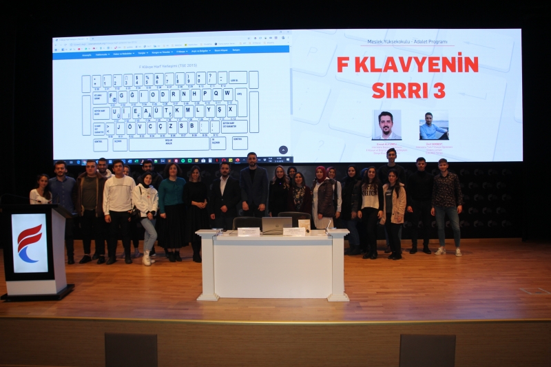 Fatih Sultan Mehmet Vakıf Üniversitesi Meslek Yüksekokulu Adalet Programı tarafından düzenlenen “F Klavyenin Sırrı 3” konulu seminer 05 Aralık 2019 Perşembe günü Öğr. Gör. Esra ÇALIK BAYAZIT’ın öncülüğünde Haliç Yerleşkesi konferans salonunda gerçekleştirildi. Öğrencilerimizin on parmak F Klavye tekniklerinin geliştirilmesi ve motivasyonlarını arttırmak amacıyla düzenlenen etkinlikte F Klavye farkındalığının artırılması, on parmak kullanımının önemi ve düzenlenen yarışlar hakkında bilgiler verildi.