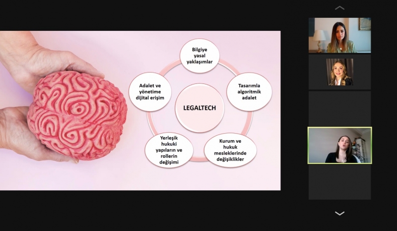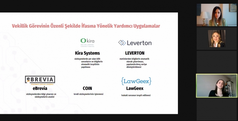 Program kapsamında insanın bilişsel özelliklerini ve davranışlarını taklit eden yapay zeka destekli uygulamaların hukuki kullanım alanlarından bahsedildi. Gebze Teknik Üniversitesi Bilişim Teknolojileri Enstitüsü Arş. Gör. Başak BULUZ KÖMEÇOĞLU’nun konuk edildiği programda; son zamanların yükselen konusu “LegalTech” kavramı, vekillik görevinin özenli şekilde ifasına yönelik yardımcı uygulamalar ve fikri mülkiyet gibi hukuk ve yapay zeka ilişkisini niteleyici konular görüşüldü. Öğr. Gör. Esra ÇALIK BAYAZIT’ın moderatörlüğünü yaptığı program konuşmacıya teşekkür belgesi takdimi ile sonlandırıldı.